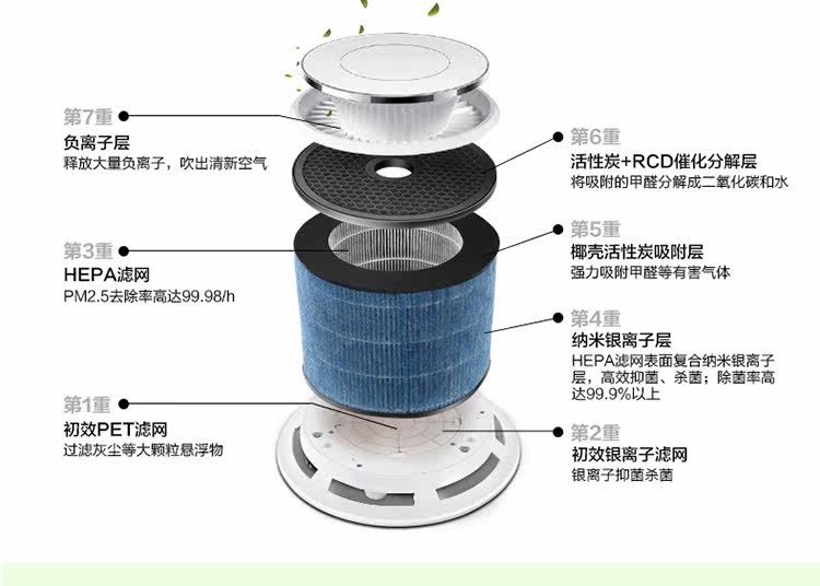 • 工作原理:活性炭 负离子 HEPA技术 光触媒