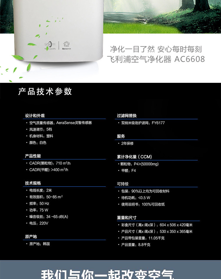 飞利浦AC6608 AC6606 空气净化器智能办公商用家用除甲醛AC5655