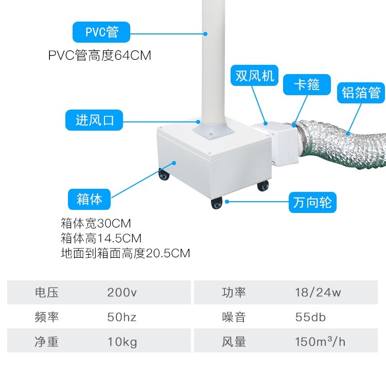 艾灸排烟机吸烟机烟雾净化系统移动式家用排烟管罩艾灸馆抽除烟器
