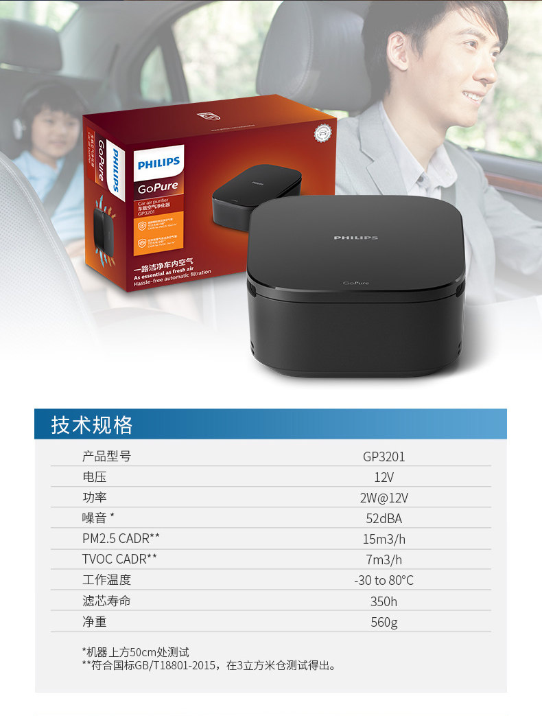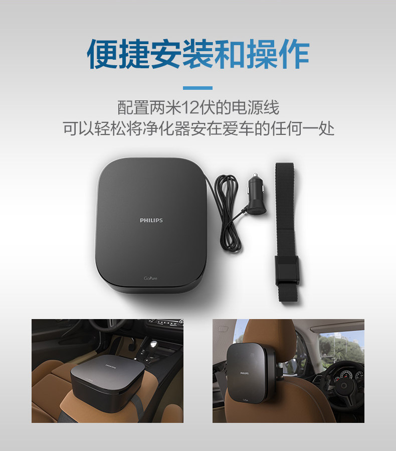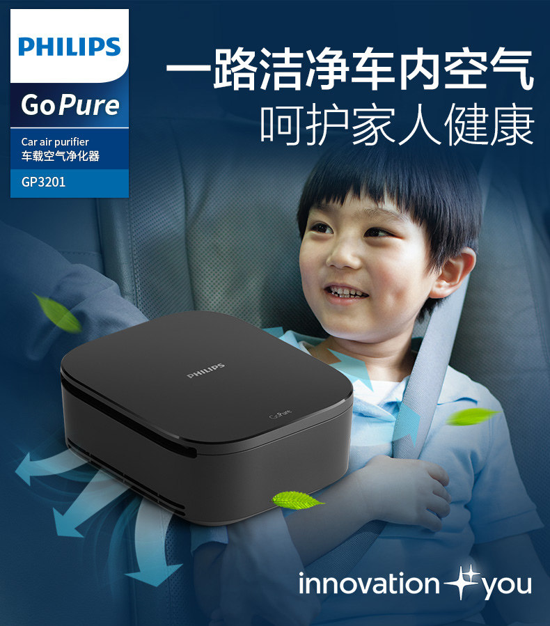 飞利浦车载空气净化器汽车内用消除新车异味烟味去甲醛雾霾pm2.5