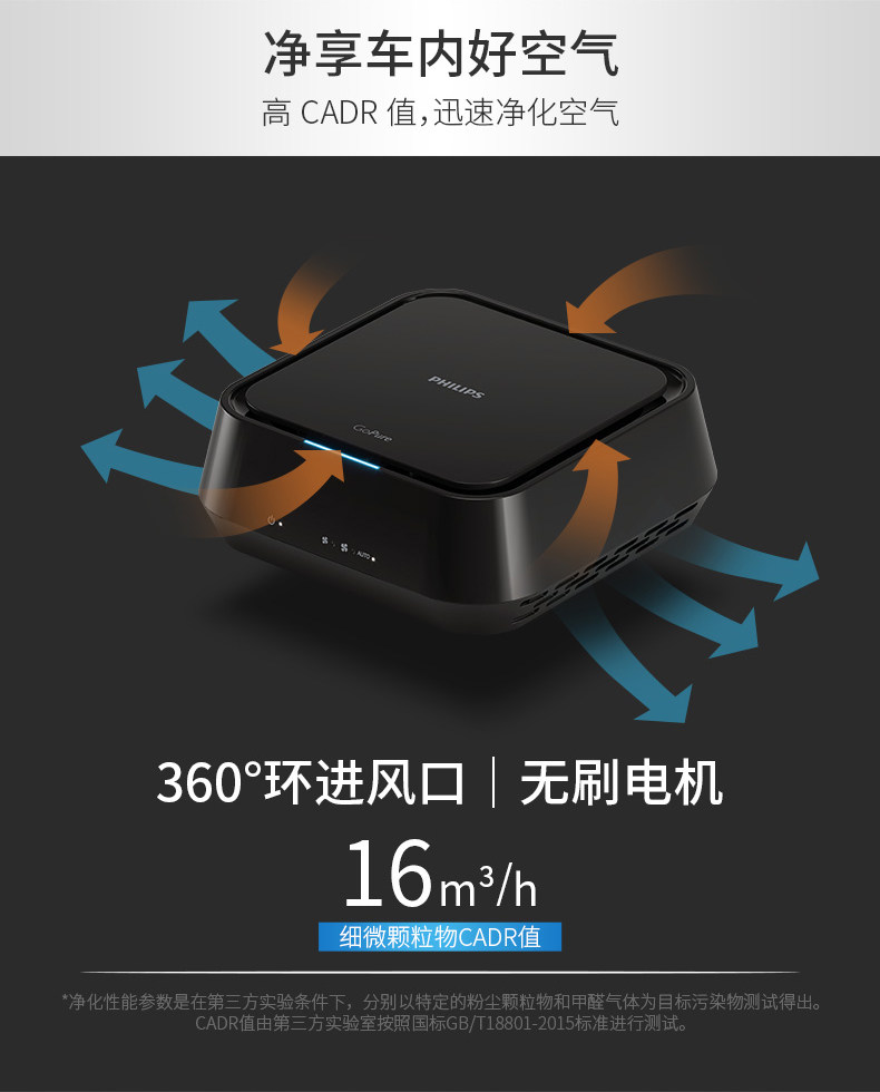 飞利浦车载空气净化器汽车用消除甲醛PM2.5异味烟味霾氧吧GP5201
