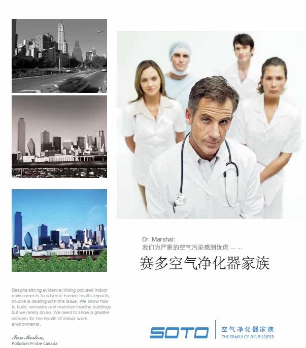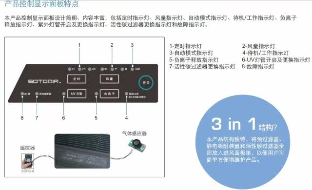 1. 现在在国内已普及的大部分的过滤型空气净化器不能有效去除空气中直径在0.1微米以下的细小灰尘,而SOTO的净化级为0.01微米,是普通净化器的1/10,对PM2.5的去除率>99.9%(中国疾控中心检测结果):