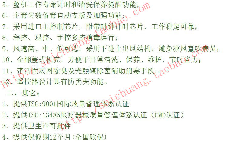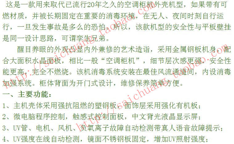 肯格王牌紫外线空气消毒机功能与技术参数