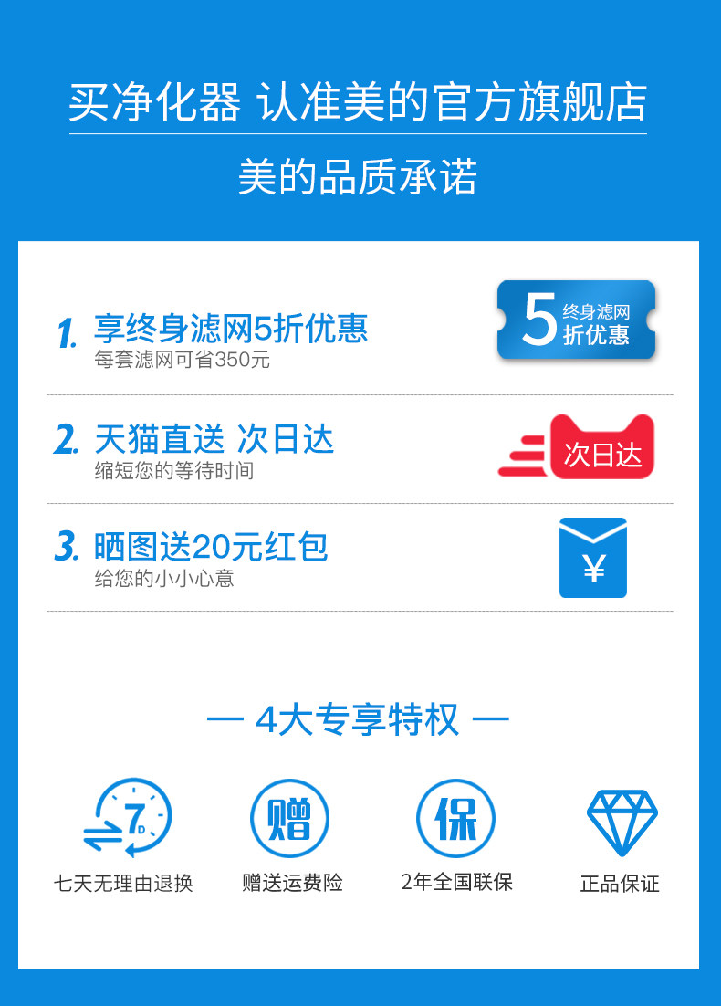 宝贝挺好的,收到货就拆开用了,美的专卖的,挑的航天专用滤网,用着更放心。马上就迎接小baby了,空气质量是绝对不能马虎的。全国联保,真的无忧了。推荐购买。