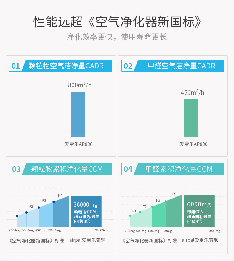 • 甲醛CADR值:450立方米/小时