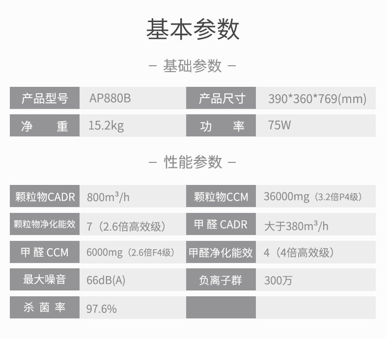 • 空气净化能效等级:高效级