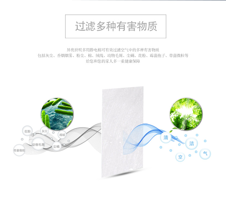 • 材质:PP静电纤维、0.1-0.3高密度纤维