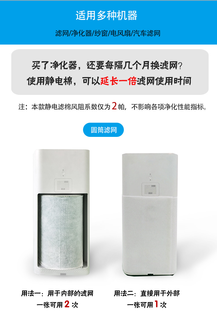 • 功能:过滤灰尘、pm2.5、延长滤网使用周期
