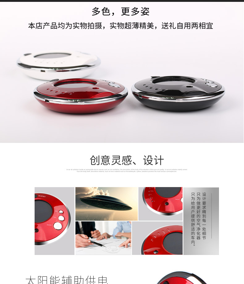 车载无线太阳能车上消除异味多功能汽车用品车内负离子空气净化器