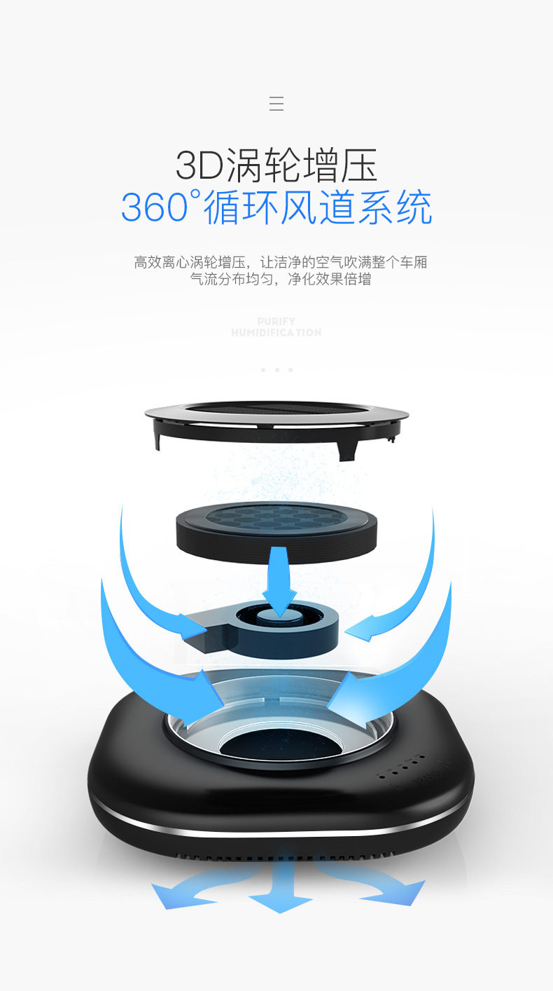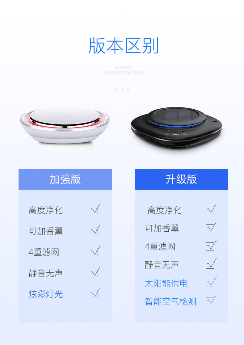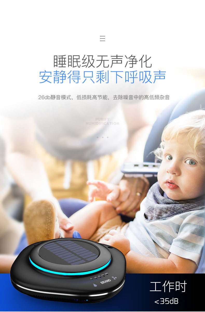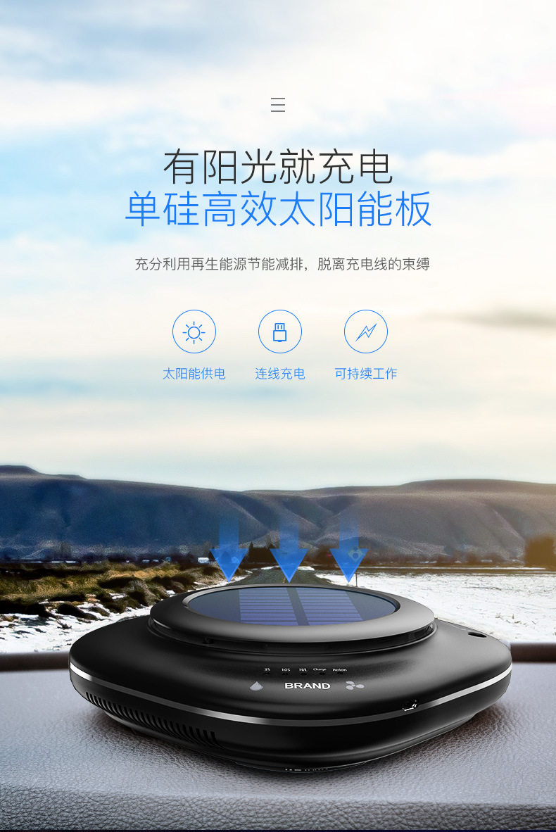 太阳能车载空气净化器汽车用内负离子消除异味甲醛香薰加湿器喷雾
