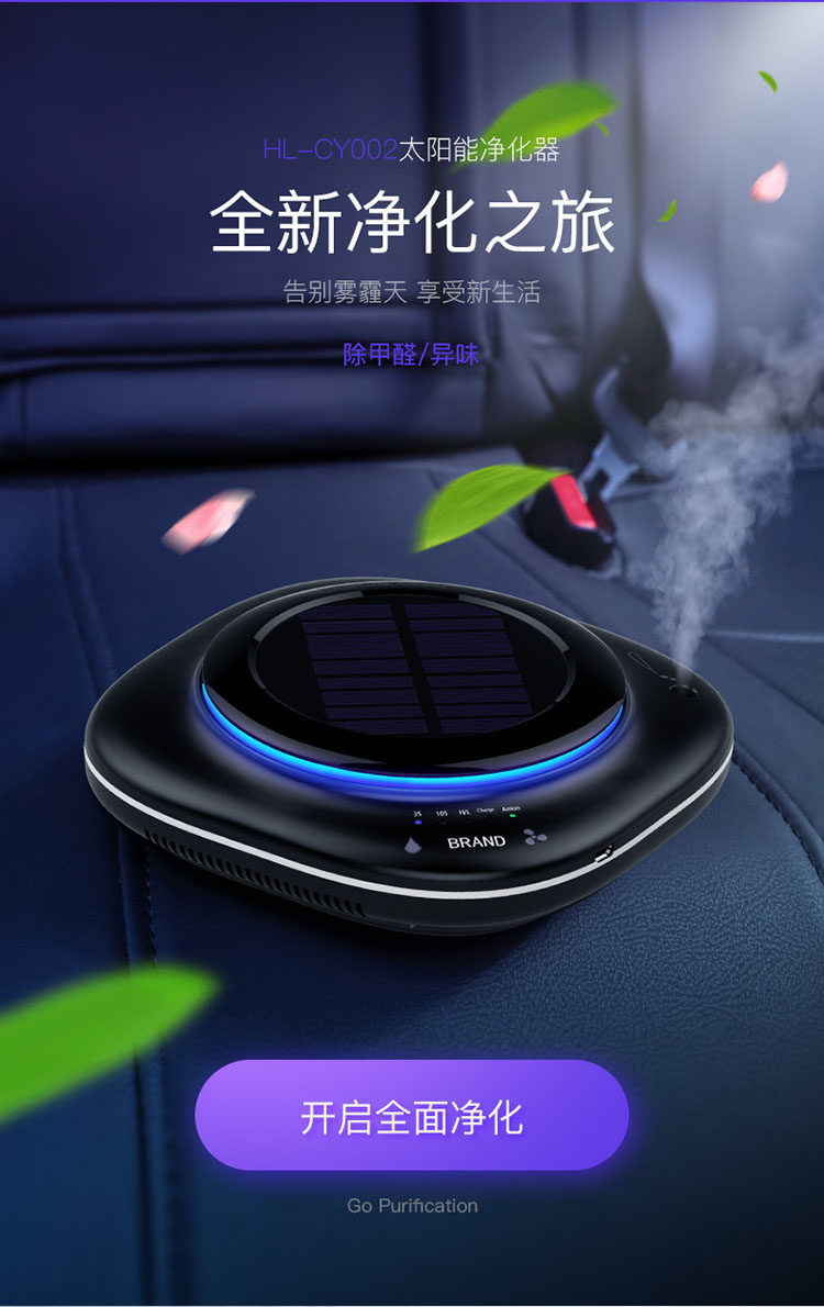 车载空气净化器车内太阳能消除甲醛异味汽车用负离子香薰喷雾加湿