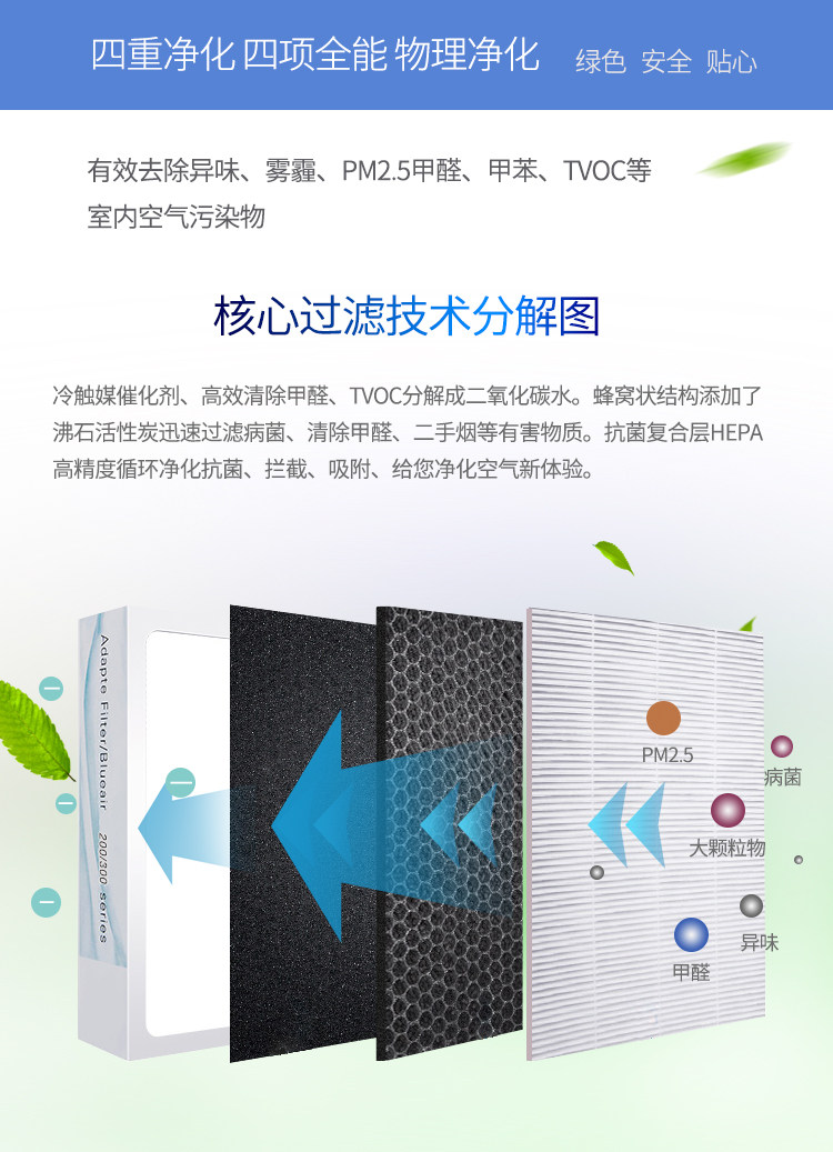 适配Blueair布鲁雅尔空气净化器403 401 450E 过滤网复合型滤芯