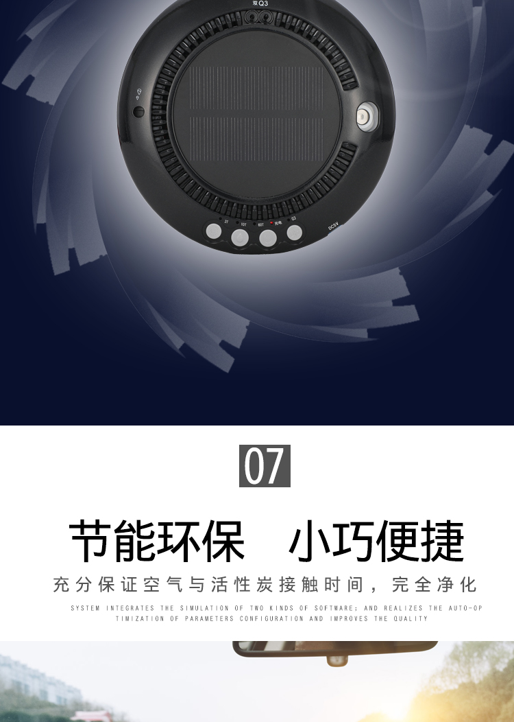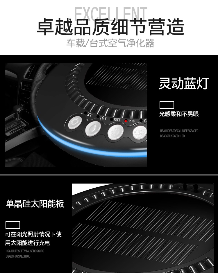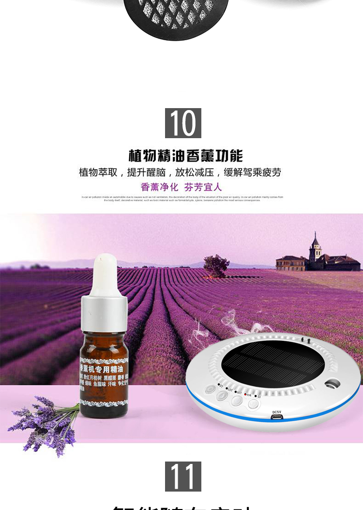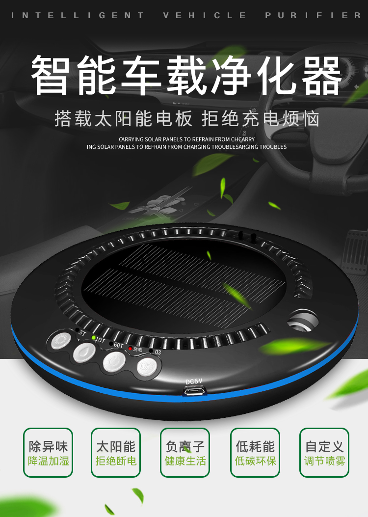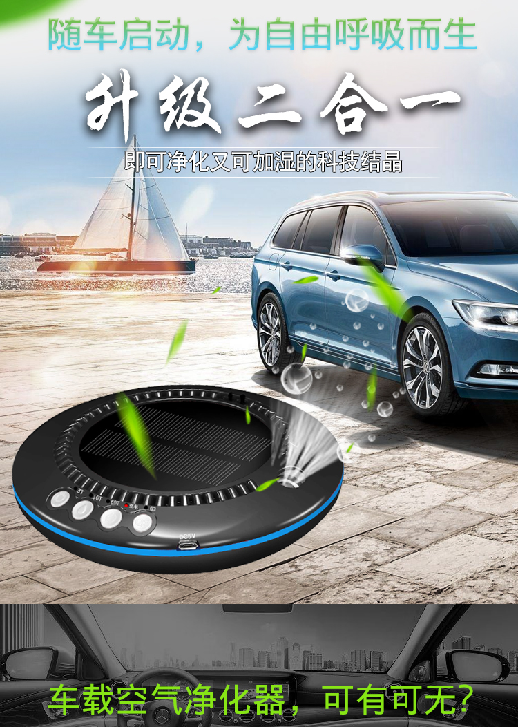 车载空气净化器太阳能汽车用氧吧加湿香薰负离子车内除味除甲醛