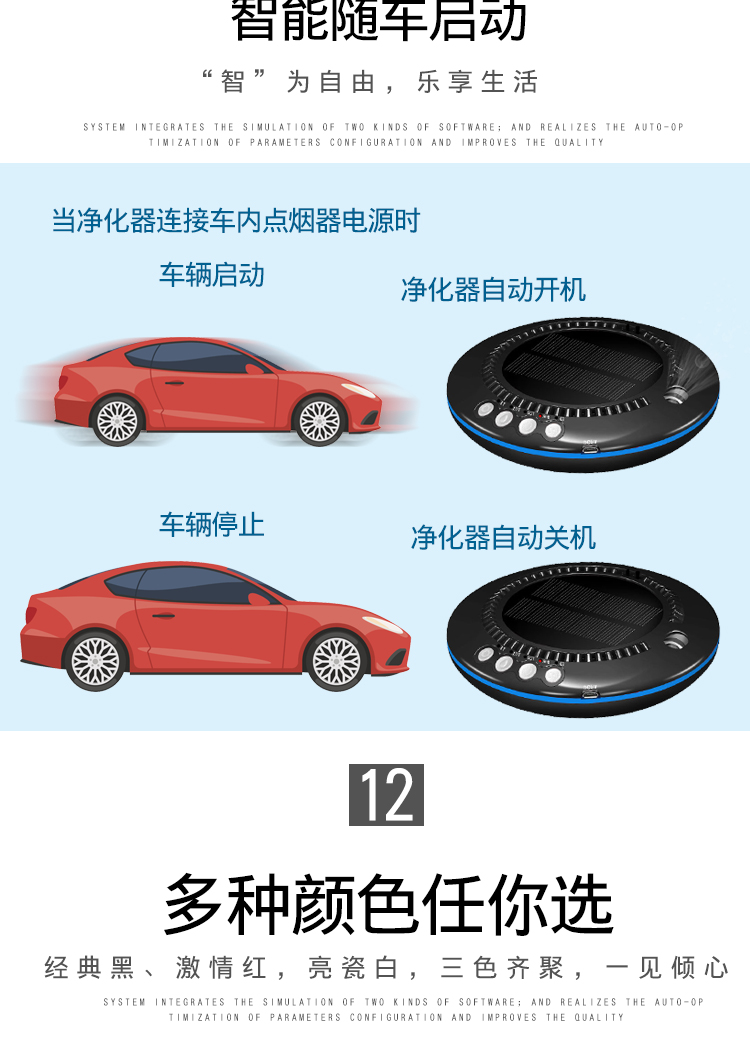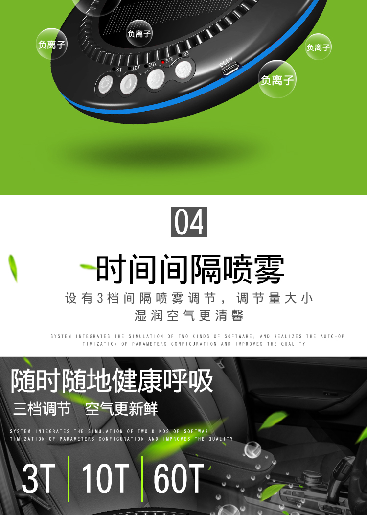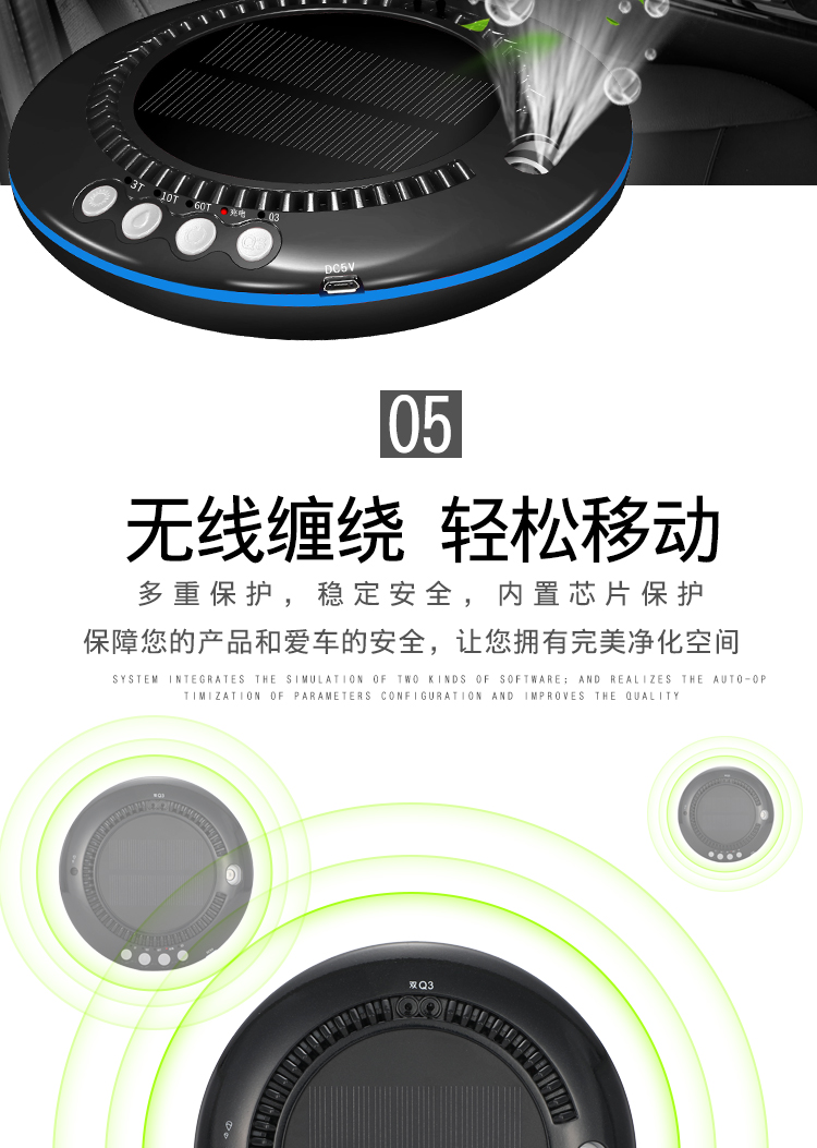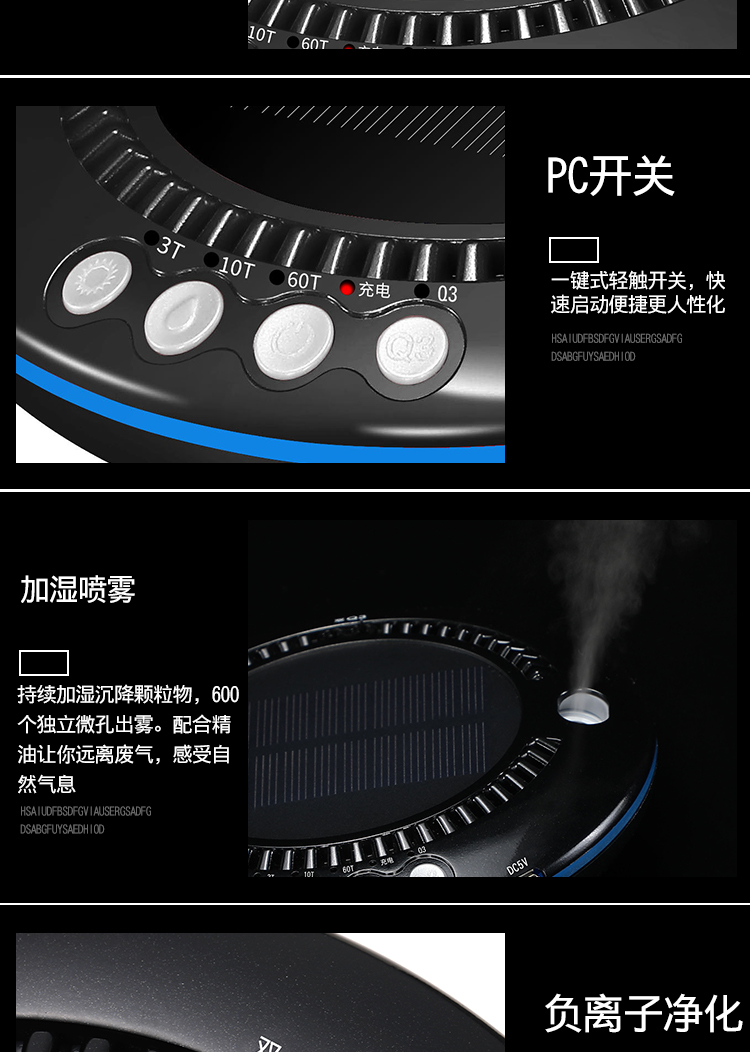 车载空气净化器太阳能汽车用氧吧加湿香薰负离子车内除味除甲醛