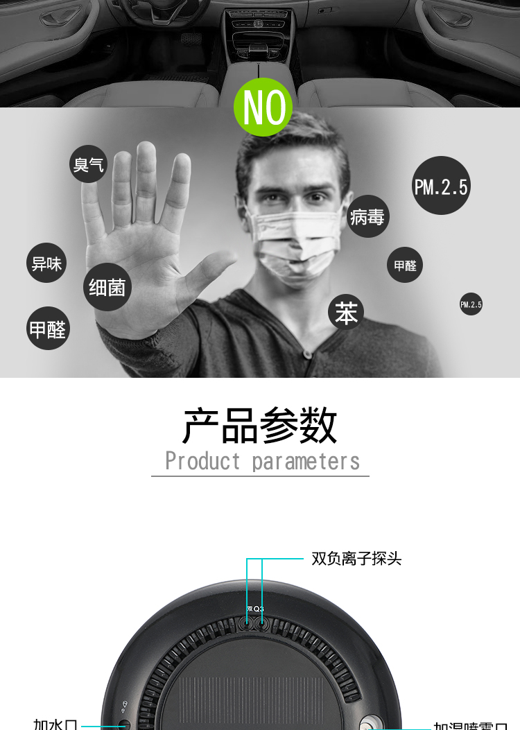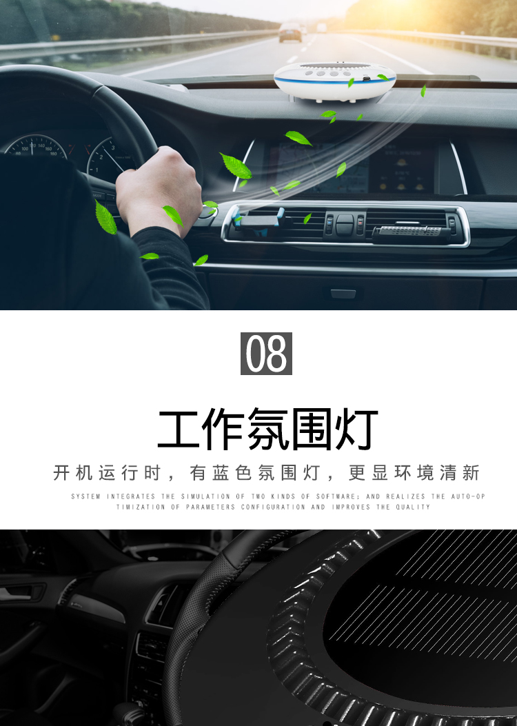 • 功能:消除异味 过滤灰尘 杀菌 吸收TVOC气体 芳香功能 加湿