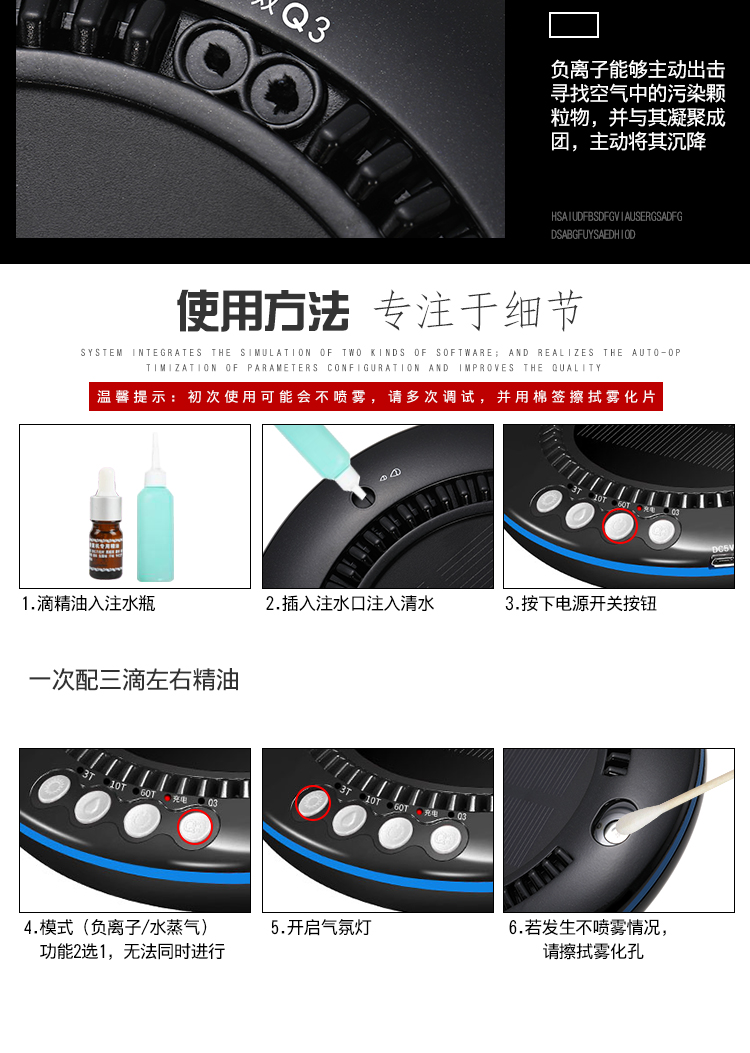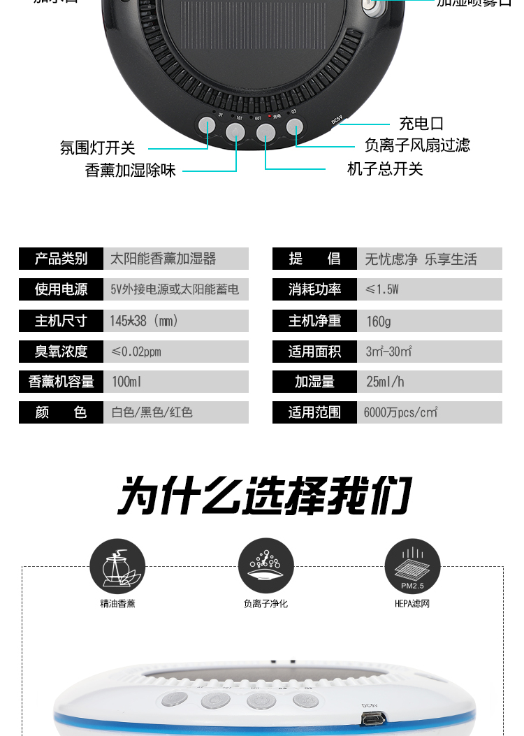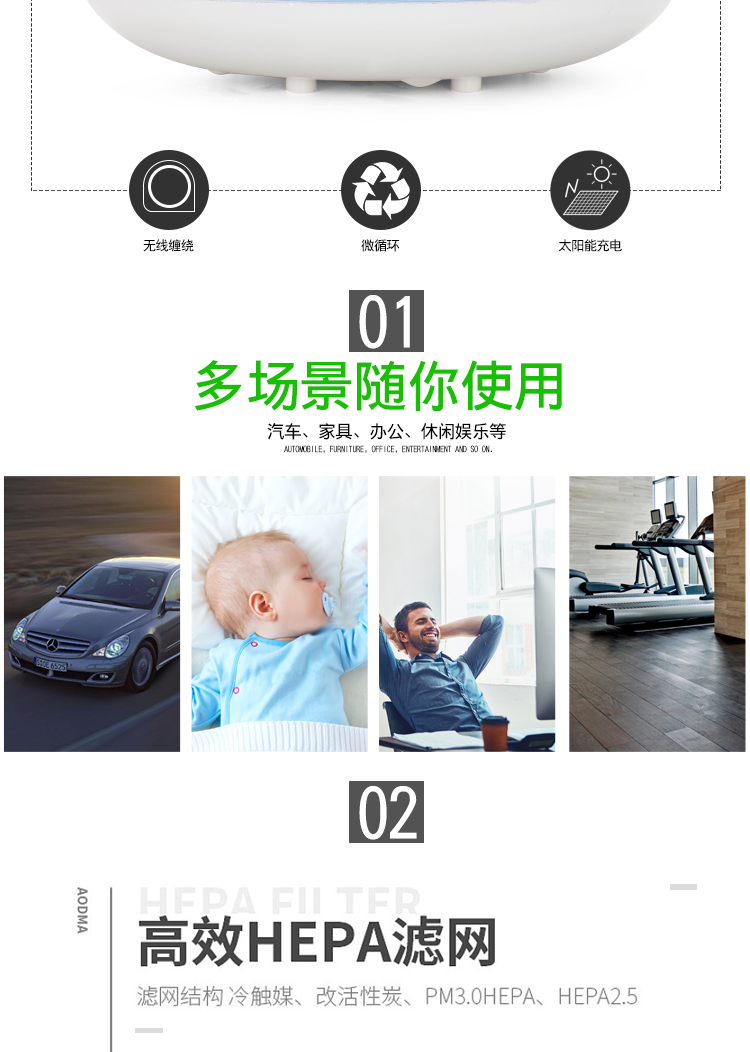 • 净化原理:HEPA滤网 活性炭 负离子