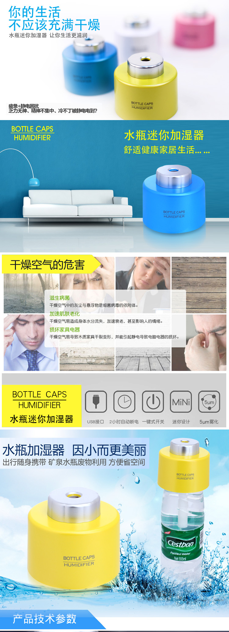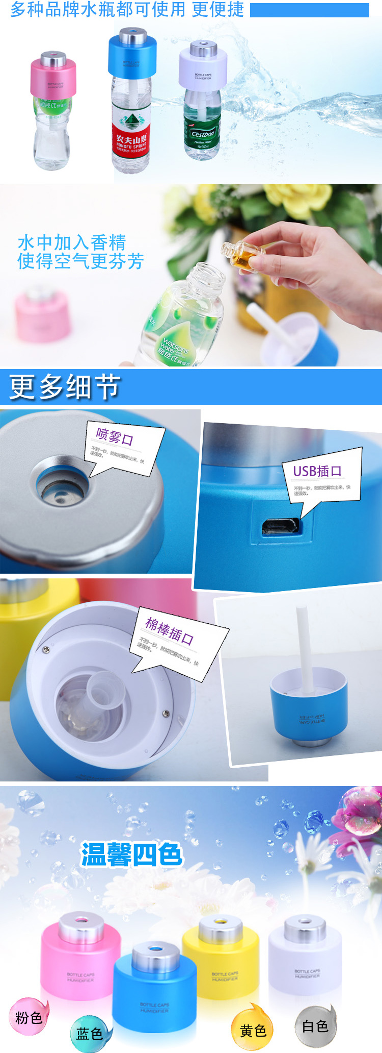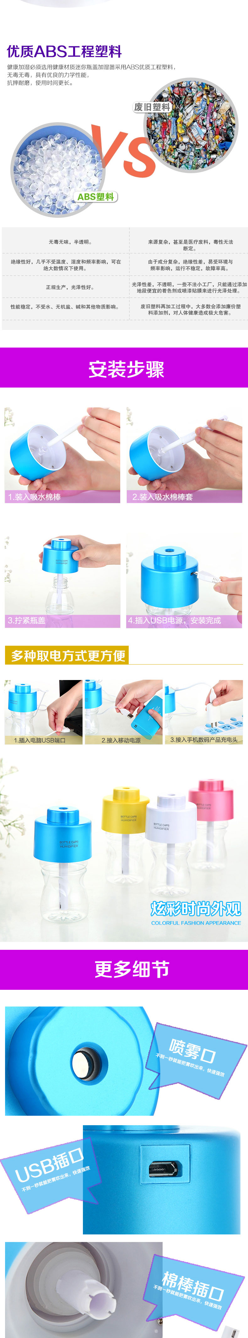 产品特点:迷你、时尚、便携、实用,适用于大部分品牌矿泉水瓶子。