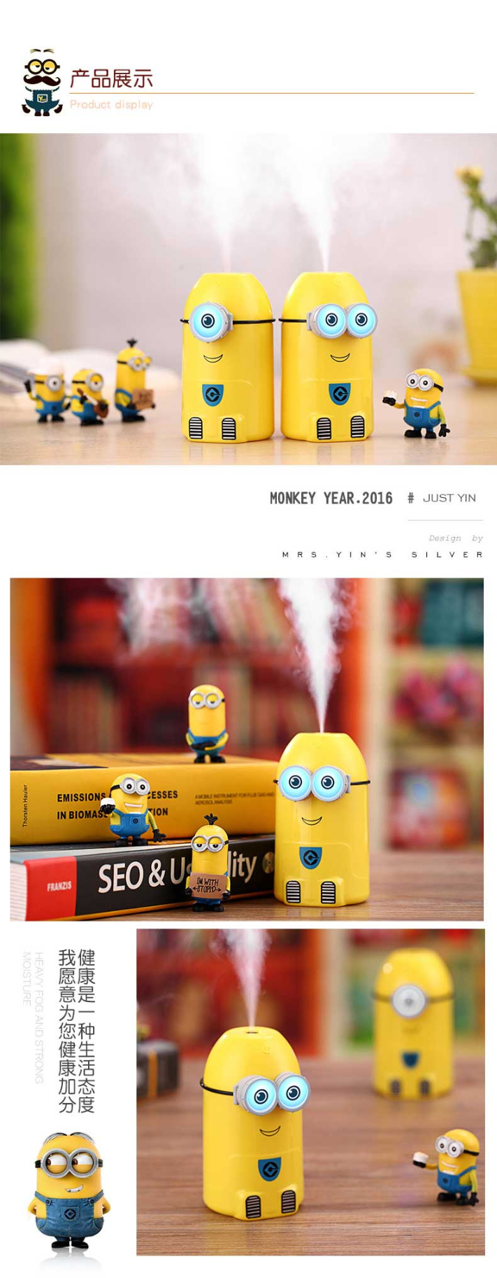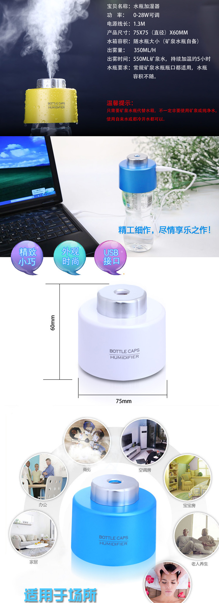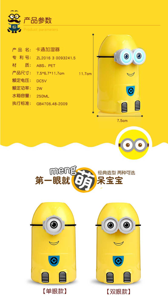 产品配件:加湿器+USB电源线+专用棉棒2支,彩盒包装。