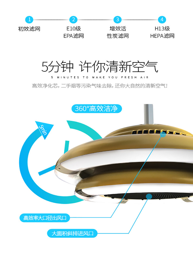 麻将机棋牌室会所专用空气净化器抽烟机家用房间排二手烟吸烟宝灯