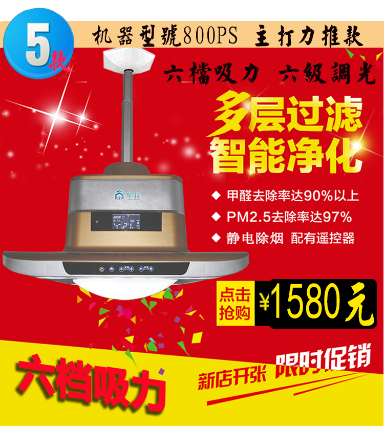 [宁波华能空气净化器品牌店空气净化,氧吧]麻将机吸烟灯季洁棋牌室空气净化器家用月销量4件仅售580元