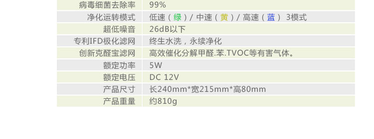 • 功能:除花粉 除甲醛 除烟除尘 杀菌