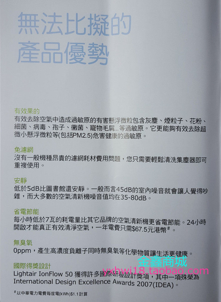 渴求目標! Lightair IonFlow 50榮獲了好幾項著名的設計獎,尤其是國際設計卓越獎(IDEA)。它為你提供了一種可替代典型工業外觀的擁有時尚外觀的空氣淨化器