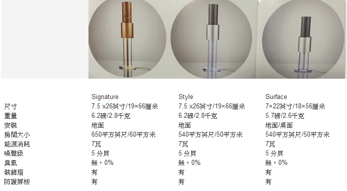 IonFlow 50 Signature使用了精緻時尚的設計風格,自然的琥珀色和木紋飾面的全新精緻外觀將為傳統風格的家居增添了一份時尚感。素雅的琥珀色裝飾燈散發出一種溫暖典雅的感覺。 Signature具有如Style、Surface和Sky一樣的極佳性能和產品特徵,能夠非常有效地清除會引起最嚴重健康問題的最小以及最有害的微粒。無以倫比地兼具了有效、無聲、無臭氧產生、節能、易於使用和經濟運行等優點,Signature可為世界上的每一個傳統家庭提供更為清新和更加健康的空氣。