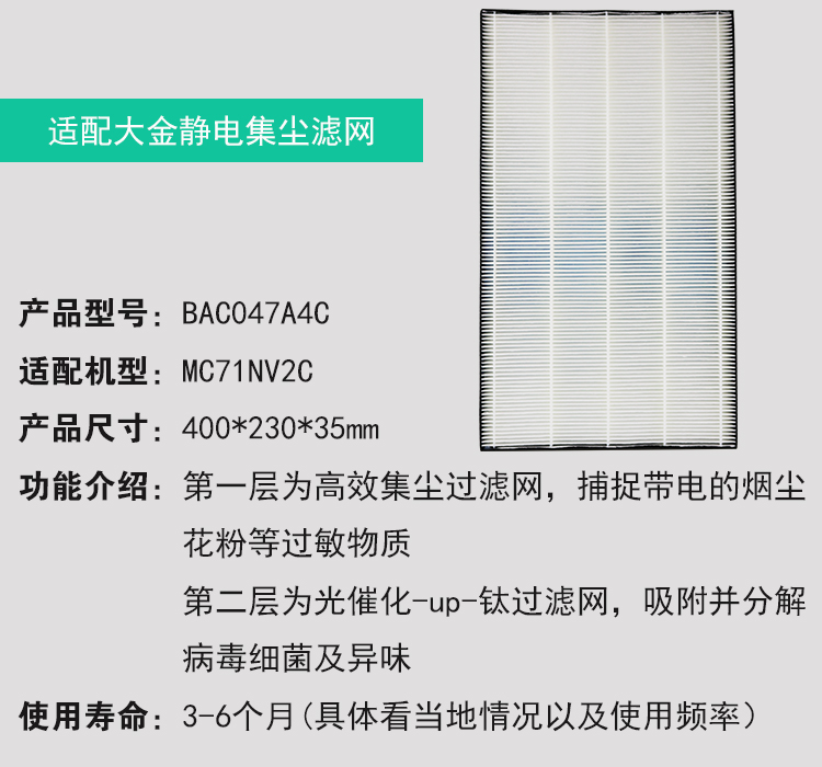 适配大金空气净化器集尘过滤网MC71NV2C-W/-N/-S/-R定制BAC047A4C