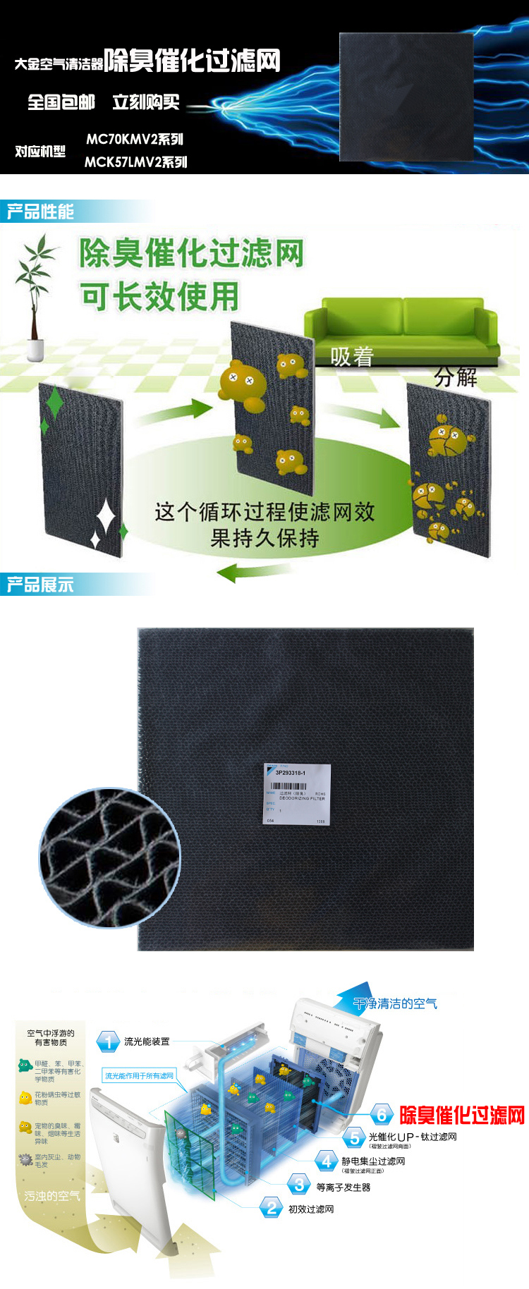 大金空气净化器滤网活性炭黑色除臭催化过滤网适用于MC70KMV2/57