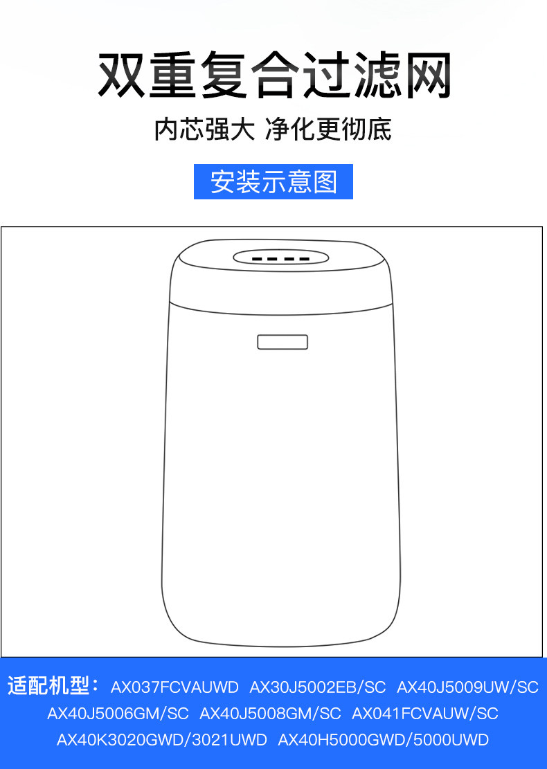 [臻美电器旗舰店净化,加湿抽湿机配件]适配三星空气净化器滤网KJ350G-月销量6件仅售198元