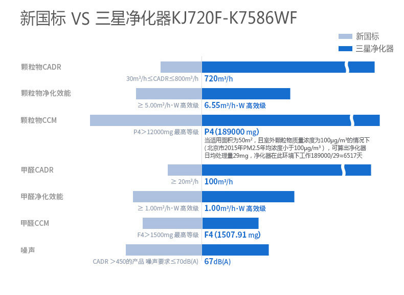 • 颗粒物CADR值:720立方米/小时
