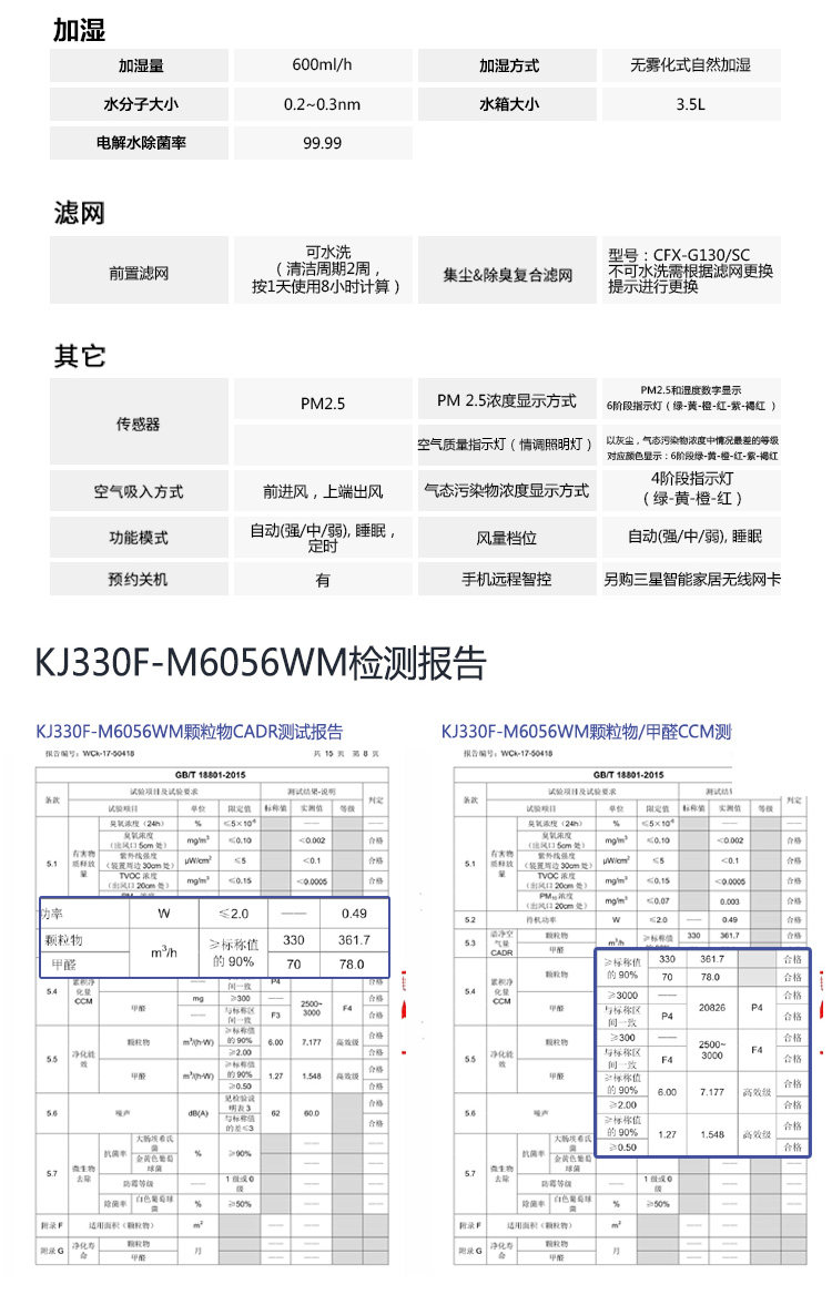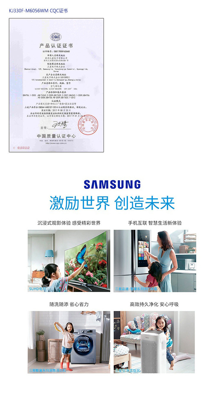 三星空气净化器润除菌健康加湿无雾高效除甲醛雾霾KJ330F-M6056WM