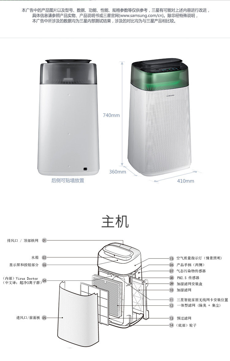 [动力电器专营店空气净化,氧吧]三星空气净化器润除菌健康加湿无雾高效月销量0件仅售5990元