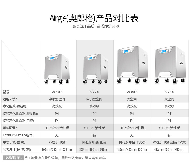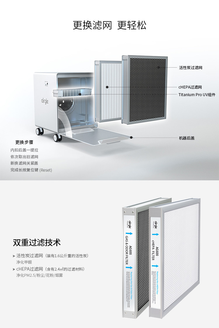 美国Airgle奥郎格空气净化器 家用除甲醛静音智能杀菌 AG600
