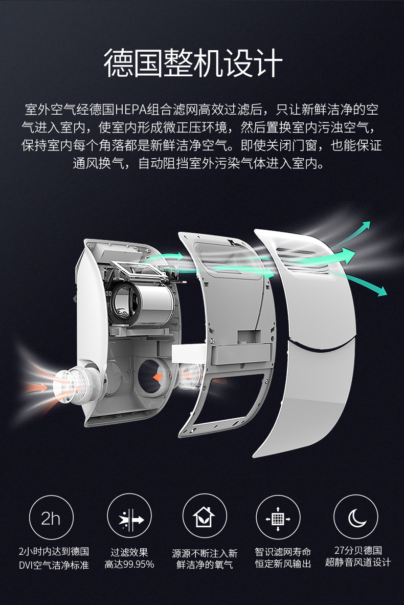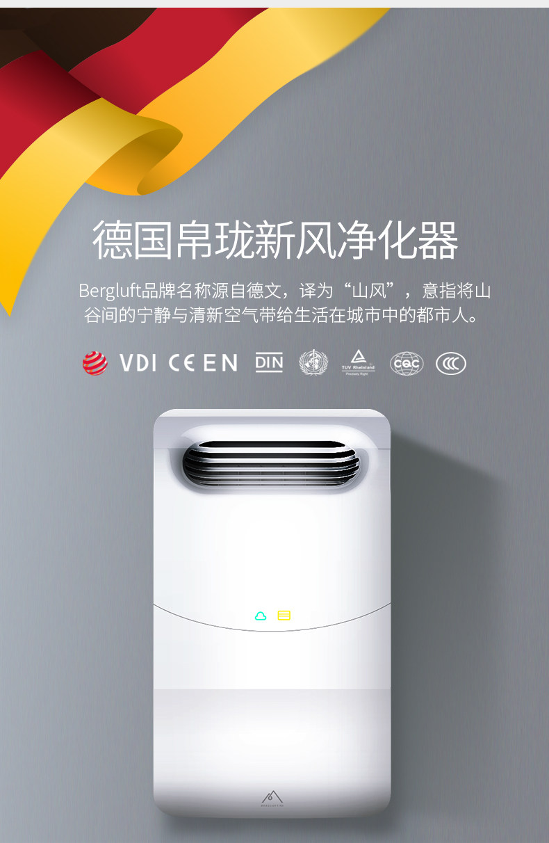 德国帛珑新风机壁挂式新风系统家用 空气净化器 换气机除雾霾甲醛