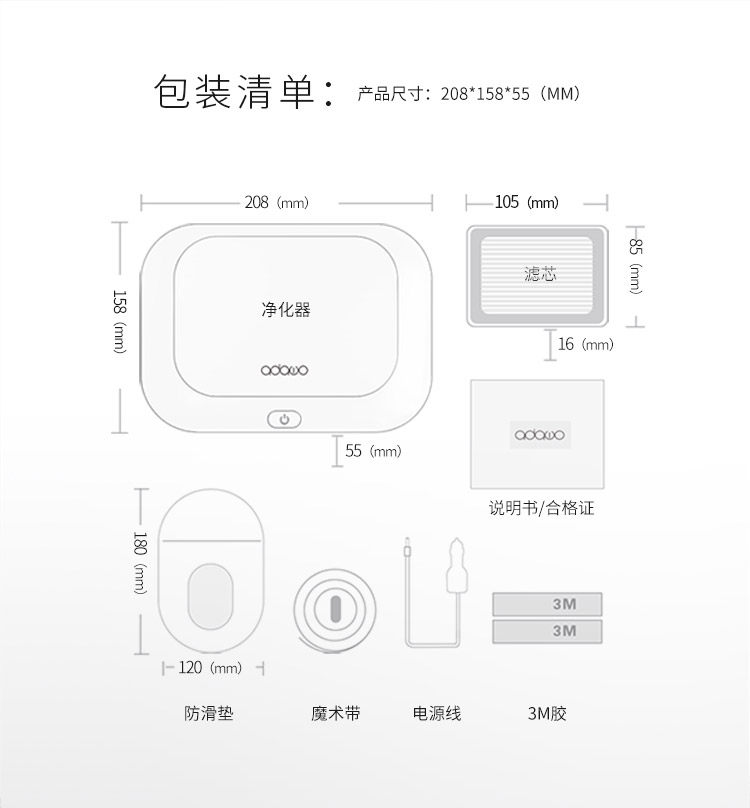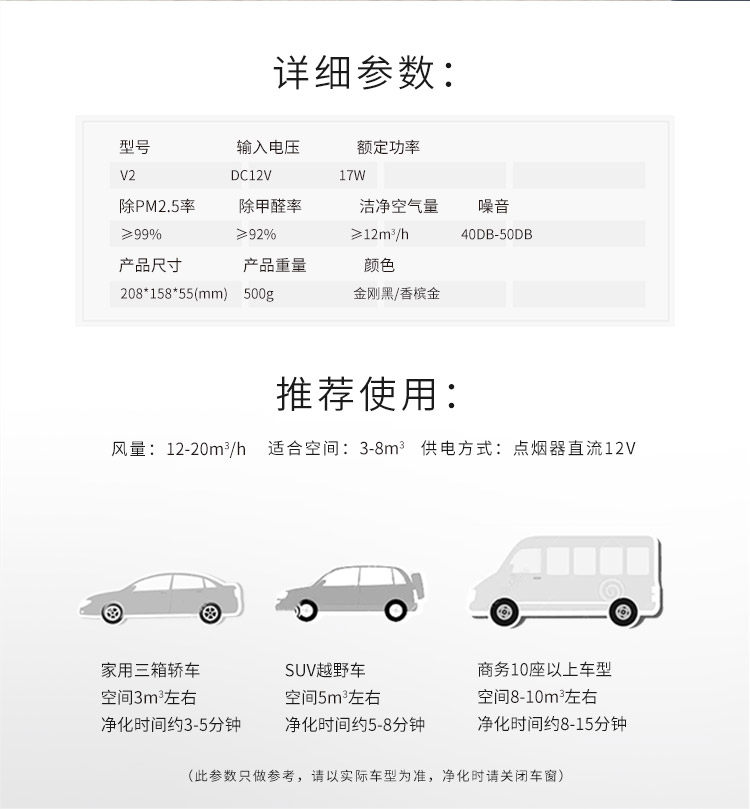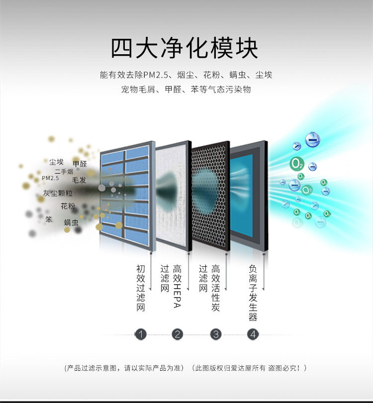 • 功能:除VOC 除花粉 除颗粒物 除甲醛 除烟除尘 除雾霾 除菌