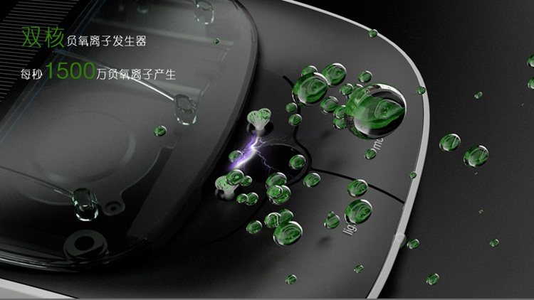 6. 双重负离子净化,24小时细菌去除率99%,24小时甲醛去除率98%。