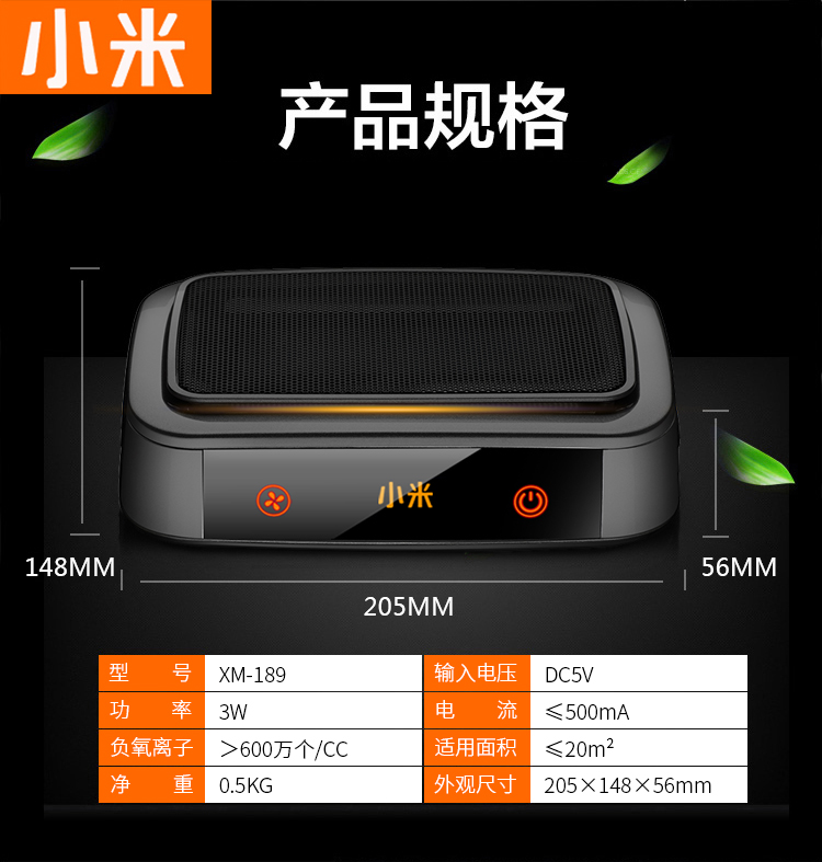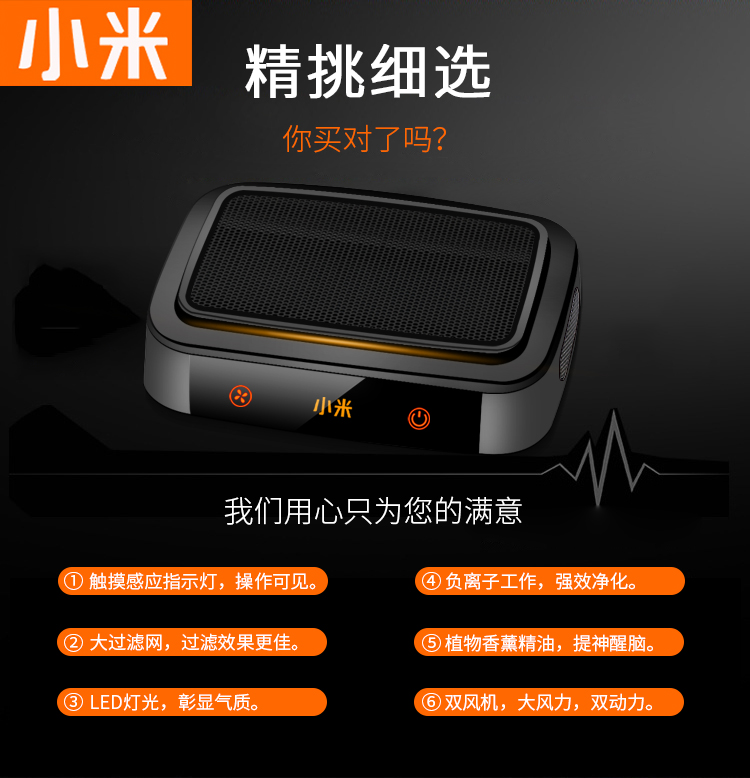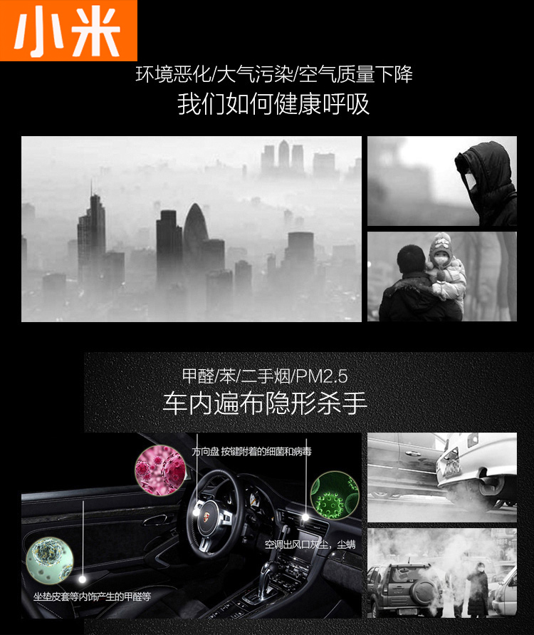 小米车载空气净化器车用负离子消除甲醛pm2.5异味汽车净化器香薰