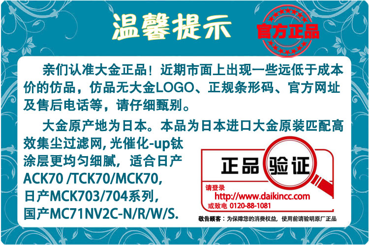 经专业空气检测仪检测,PM2.5去除率更高,性能更佳,更能为亲吸附空气污染物,是大金空气净化器的更佳伴侣!
