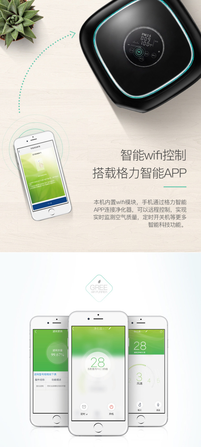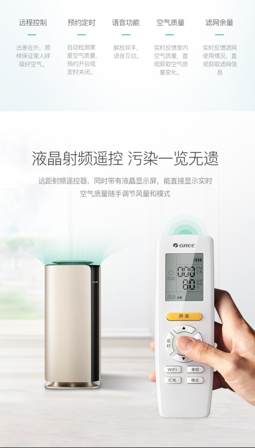 格力/GREE空气净化器除甲醛智能静音除菌家用雾霾pm2.5除二手烟尘