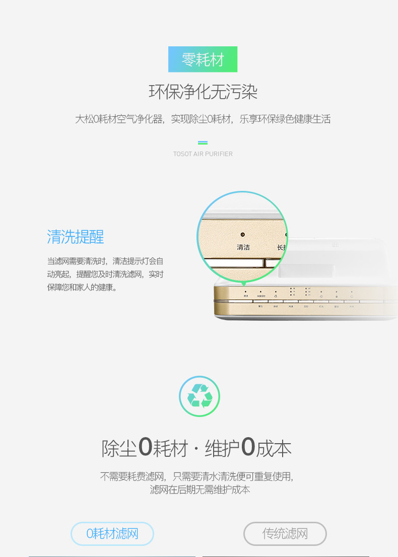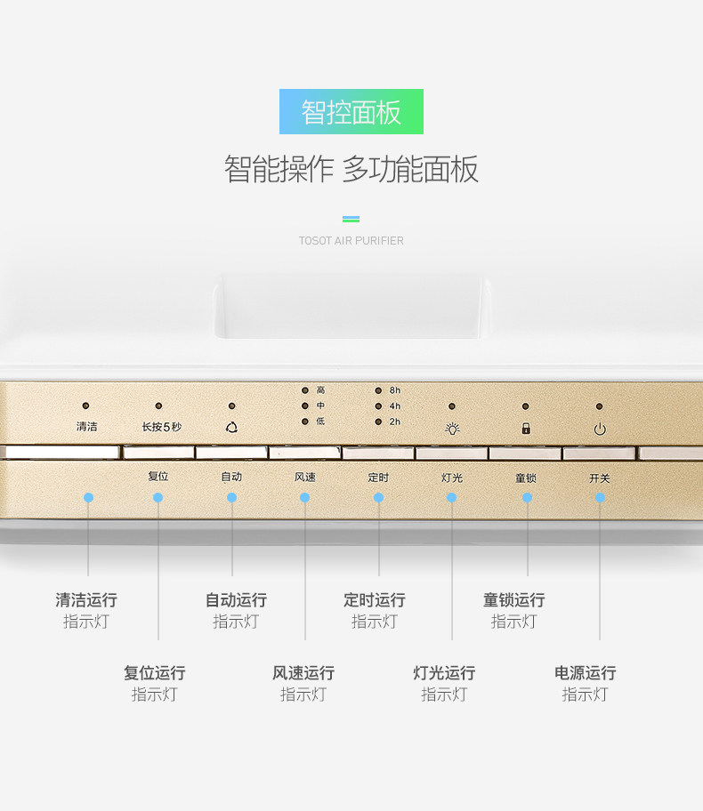 • 功能:定时 除花粉 除颗粒物 除烟除尘 杀菌