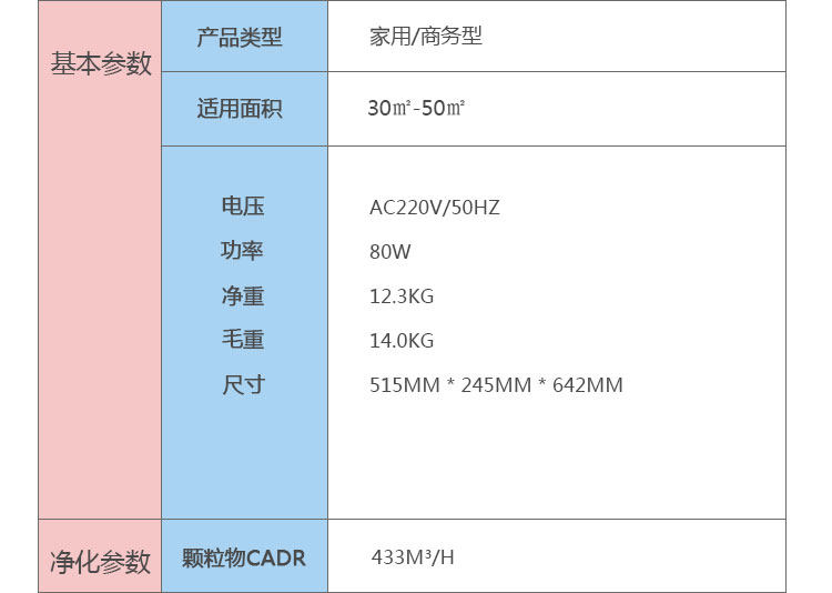 • 空气净化产品类别:空气净化器