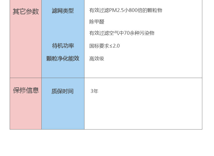 • 空气净化能效等级:高效级
