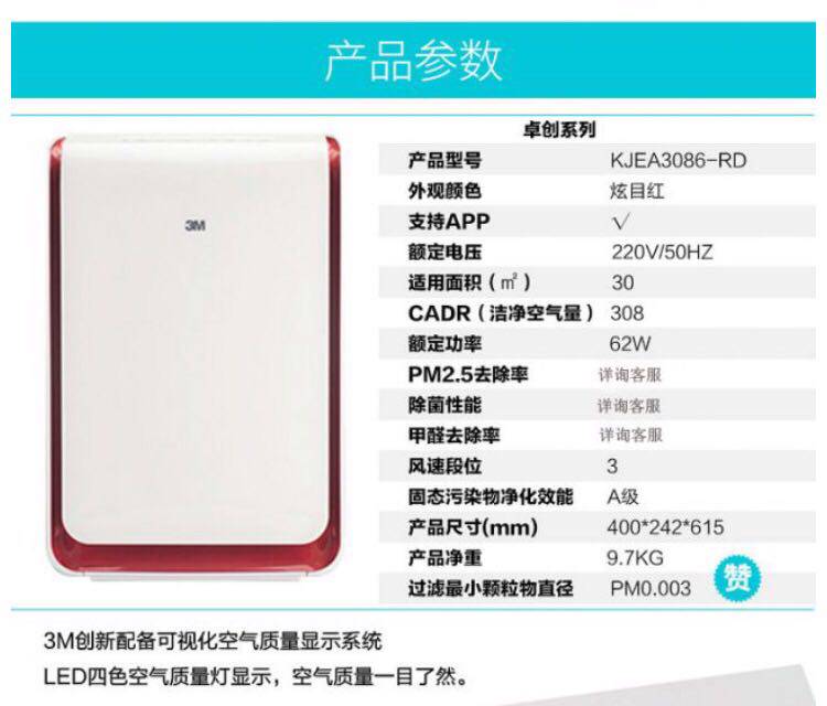 3M空气净化器家用除甲醛PM2.5智能wifi静音KJEA3086-RD净化器氧吧