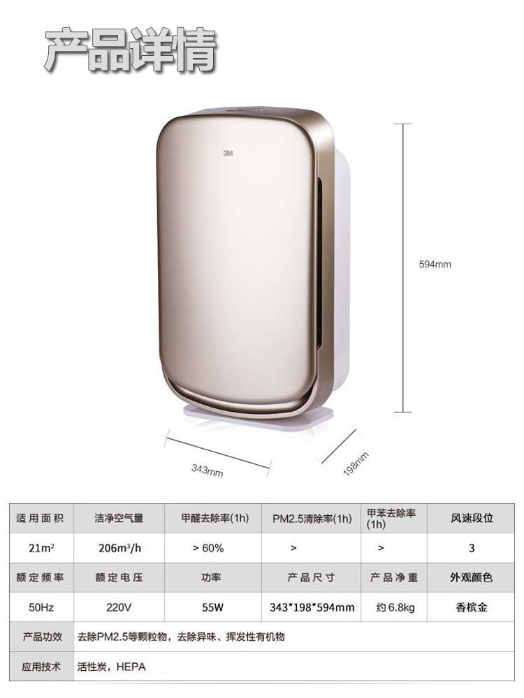 3M KJEA2068空气净化器家用杀菌除甲醛PM2.5除雾霾空气净化机
