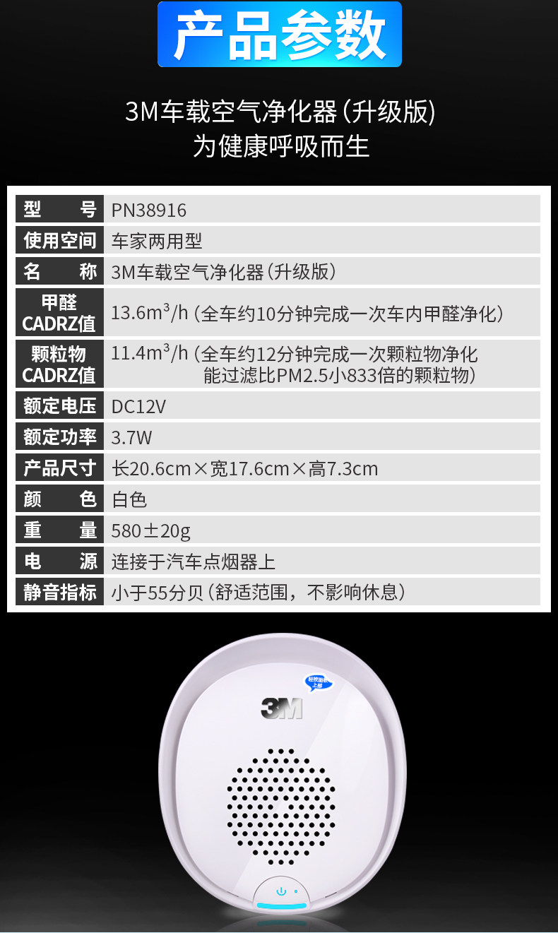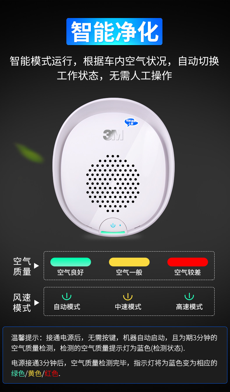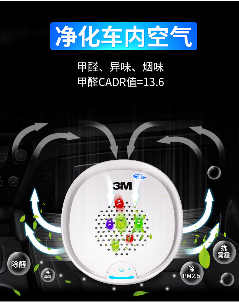 一口气买了两台,自己一台,送领导一台。物流贼快。这几天自己用了一下,的确车内空气比以前好很多。我的车是黑色外观,棕色内饰,新车很大真皮味,用了这个空气净化器,真心不错。会推荐朋友买。3M大品牌,值得信任。