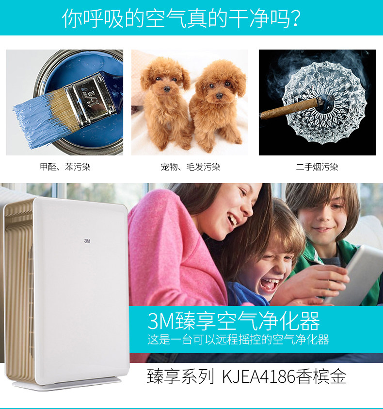 3M KJEA4186空气净化器家用除甲醛静音除雾霾PM2.5棋牌室除烟味