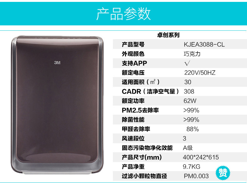 [森淼优家空气净化,氧吧]3M KJEA3088-CL除甲醛P月销量0件仅售1459元