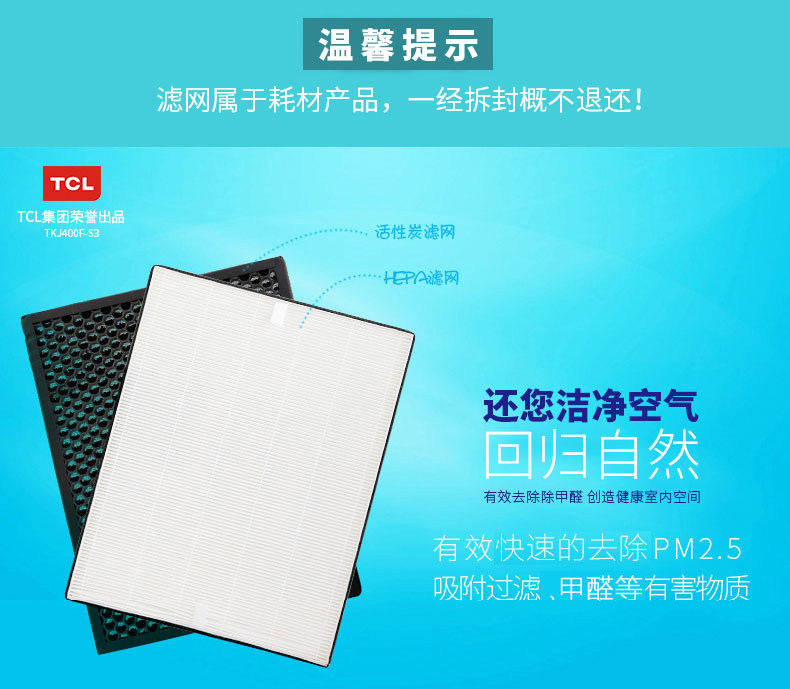 TCL 空气净化器过滤网  HEPA滤网 活性炭滤网 适用400F系列