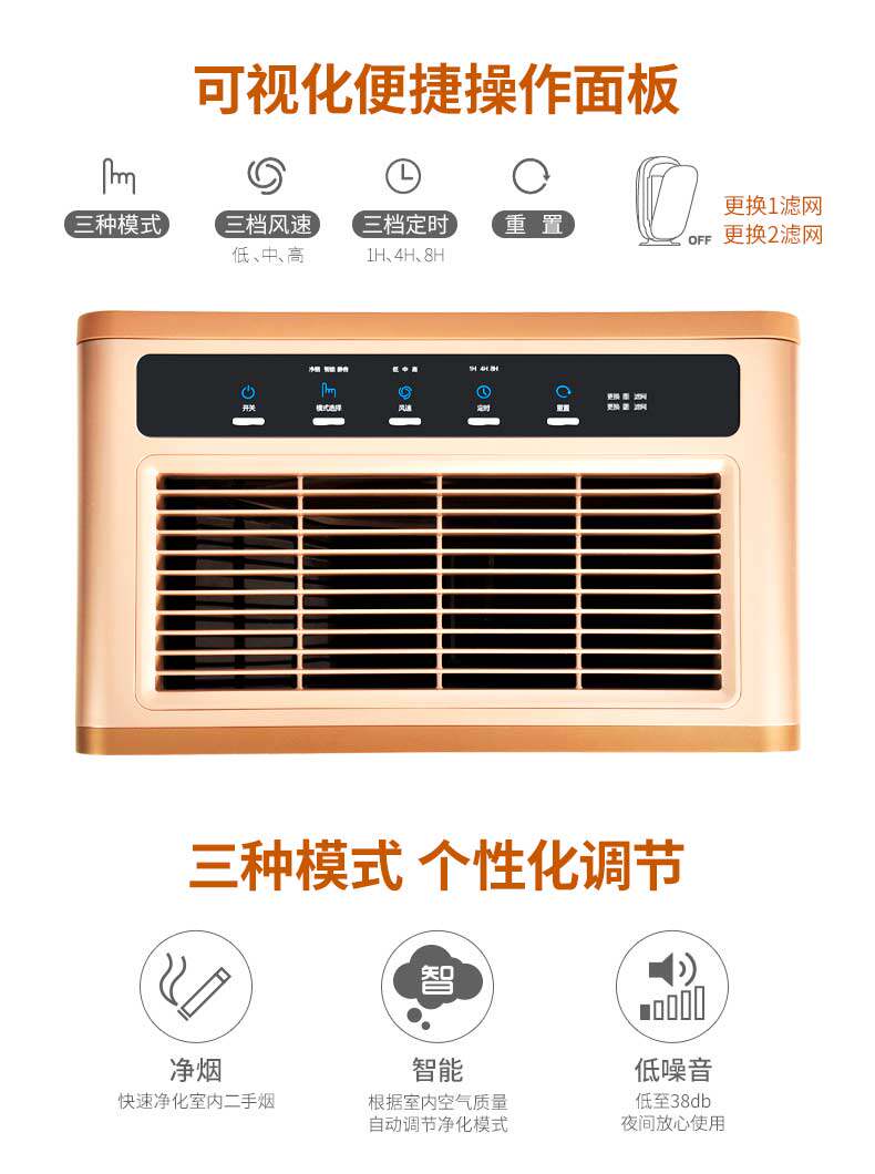 • 功能:定时除VOC除花粉除颗粒物除甲醛除烟除尘杀菌除雾霾